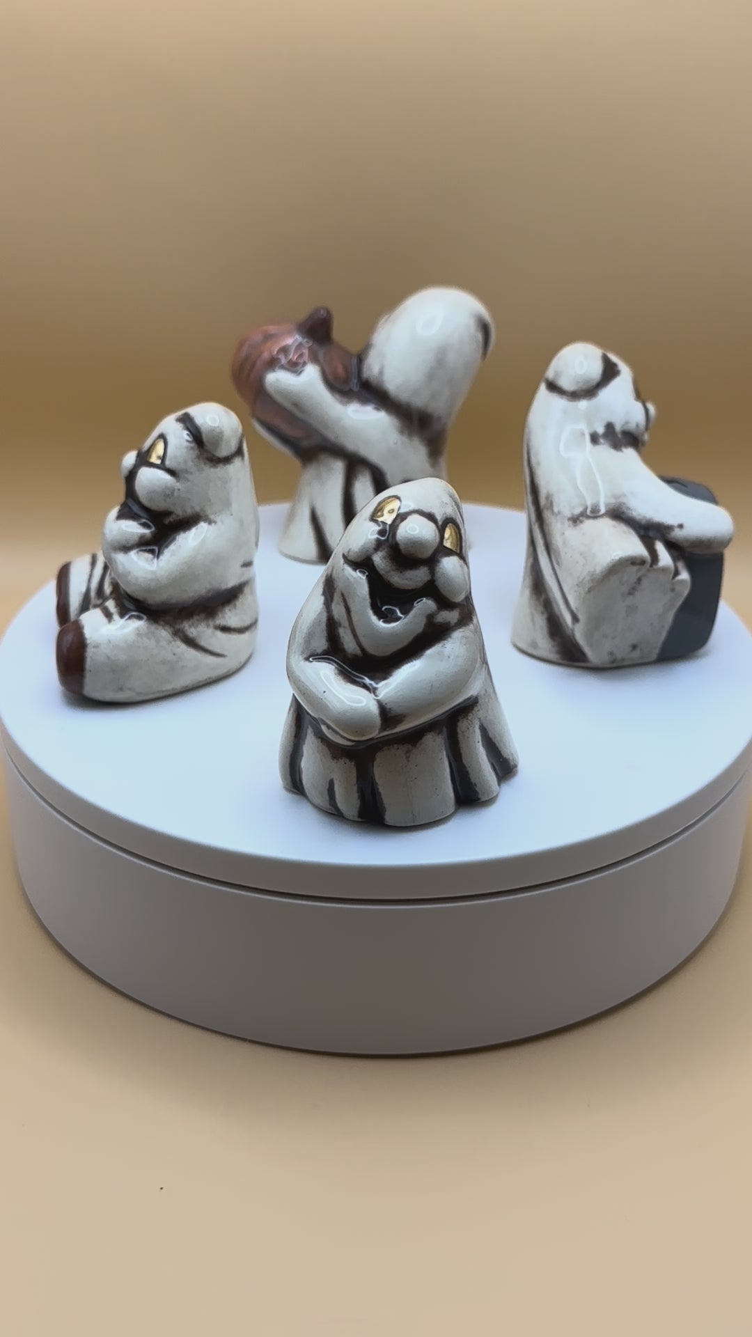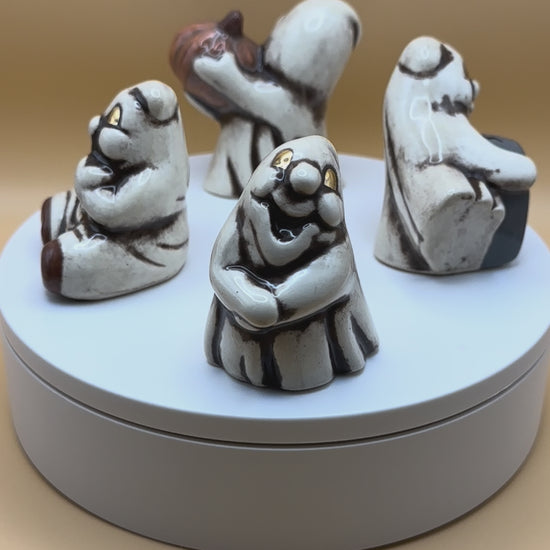 No two sets ever emerge the same. The glaze tells its own story each time, sometimes moody and dark, other times playful and bright, ensuring that every group of ghosts is a one-of-a-kind edition. Because our molds can only be used so many times before they fade, these spirits are limited not just by design, but by the life of the mold itself.