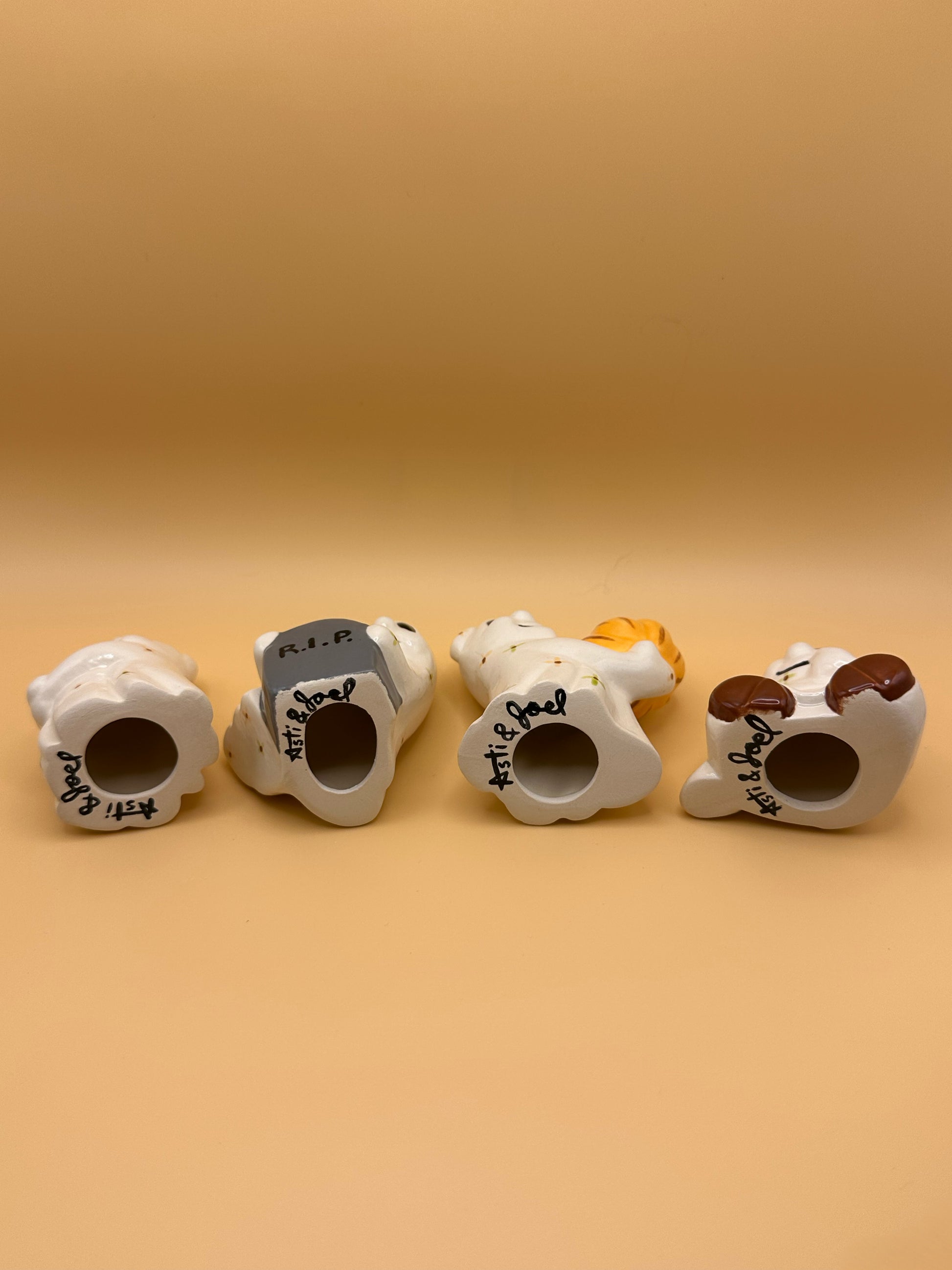 No two sets ever emerge the same. The glaze tells its own story each time, sometimes moody and dark, other times playful and bright, ensuring that every group of ghosts is a one-of-a-kind edition. Because our molds can only be used so many times before they fade, these spirits are limited not just by design, but by the life of the mold itself.