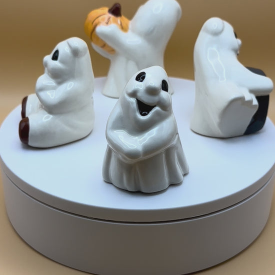 No two sets ever emerge the same. The glaze tells its own story each time, sometimes moody and dark, other times playful and bright, ensuring that every group of ghosts is a one-of-a-kind edition. Because our molds can only be used so many times before they fade, these spirits are limited not just by design, but by the life of the mold itself.