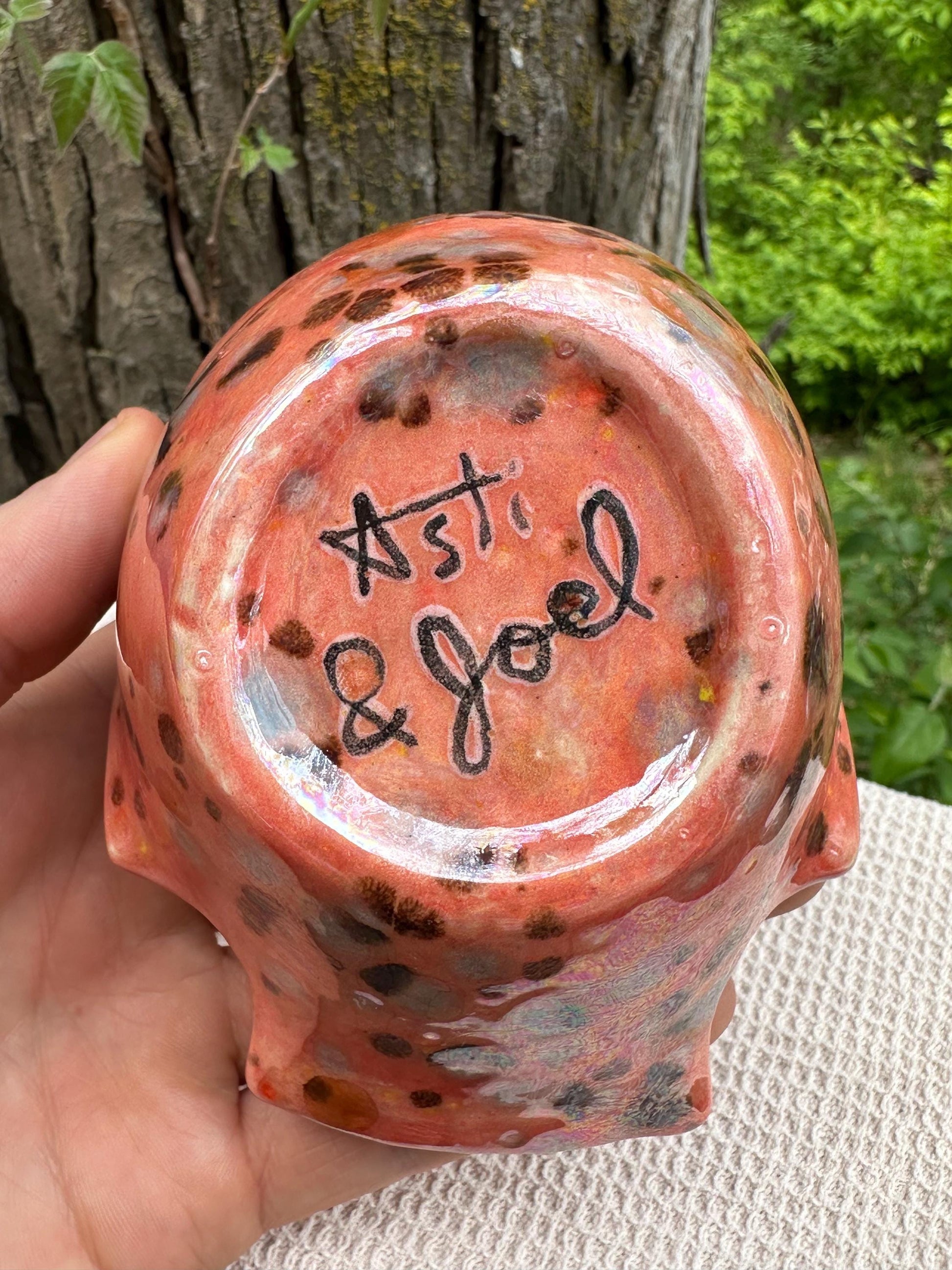 Your purchase means the world to us. Every piece you adopt supports our small ceramic studio, helps us keep creating, filming videos, and sharing the magic of clay with the world. We feel incredibly lucky that people enjoy what we do as much as we love doing it — especially as we honor the legacy of Roxie, whose molds continue to inspire us. Opening each new mold is a surprise, a thrill, and a reminder that we’re all along for this wild, creative ride together. Each item is signed Asti & Joel, so you’ll always hold onto a piece of this story — a little bit of our hands, hearts, and history. Your support brings us genuine joy, fuels our passion, and keeps this beautiful journey unfolding. Thank you for being part of it.