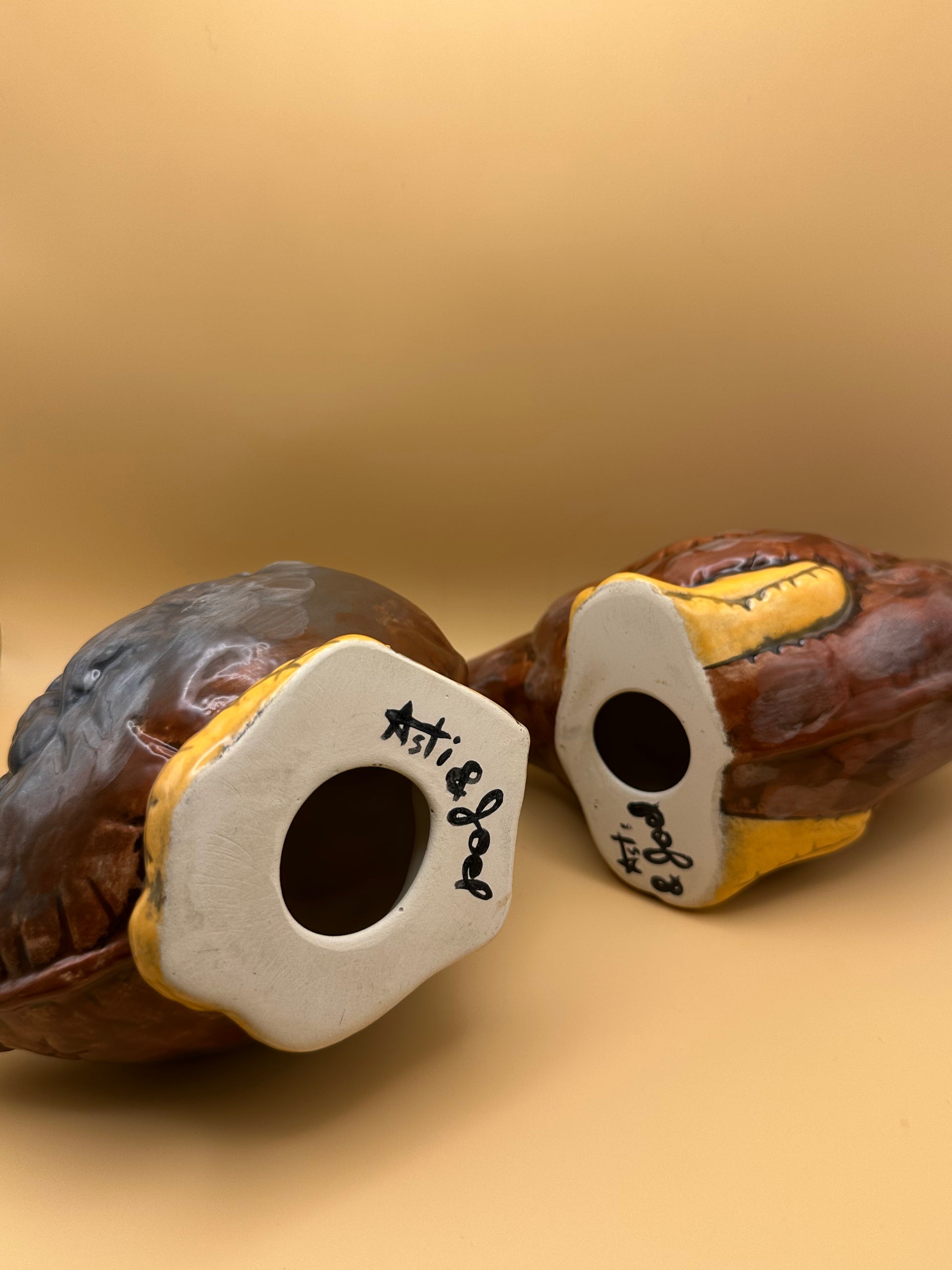 Born from forgotten molds and brought back to life in clay, these handmade ceramic ducks carry both history and spirit. Each one begins in a decades-old plaster mold that has already lived a long life, making every pour feel rare and fleeting. After careful trimming, smoothing, and layers of hand-applied underglaze, the ducks are transformed through multiple firings into glossy, vibrant figures with personalities all their own.