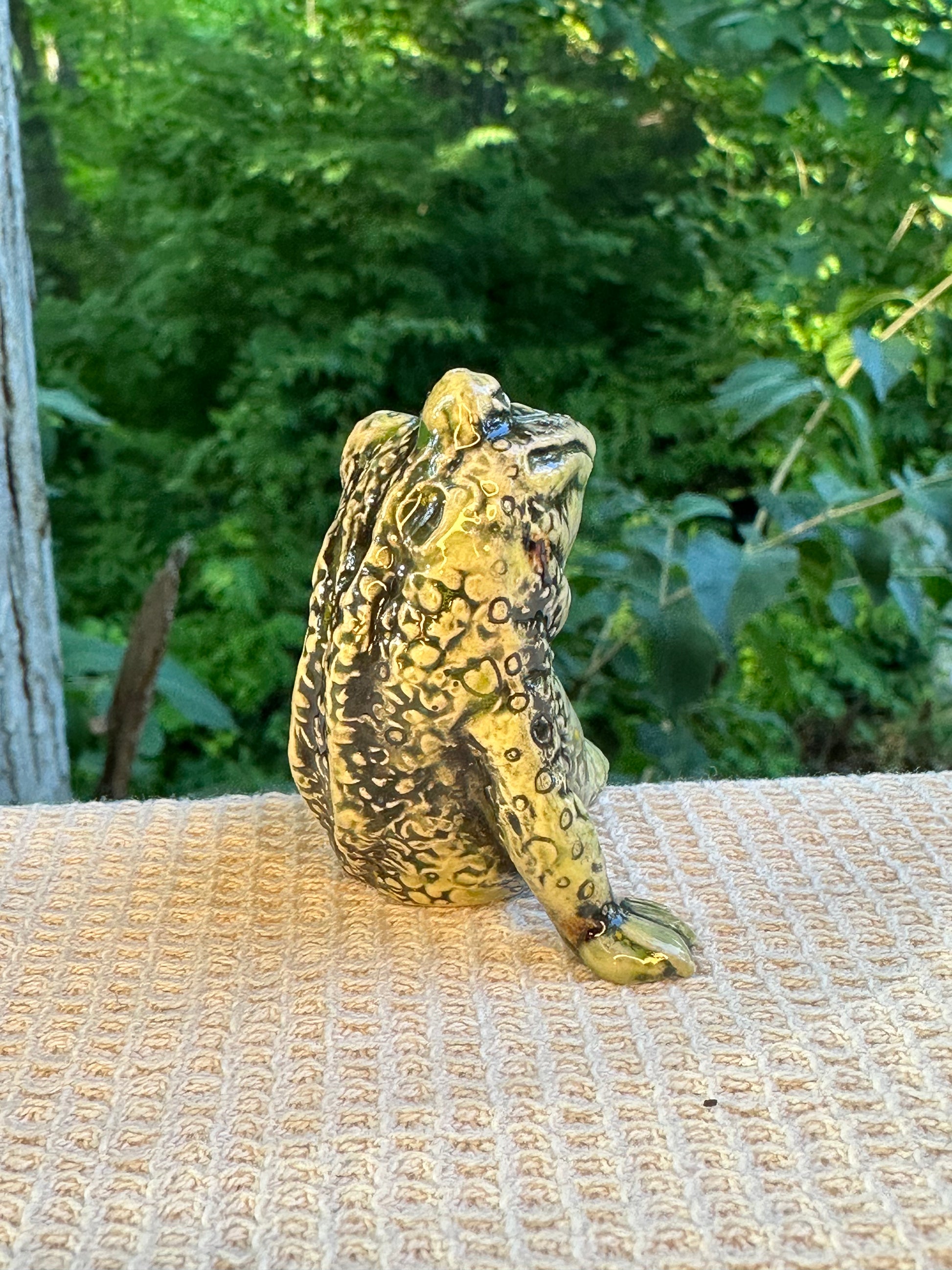 Crafted from a vintage plaster mold and glazed in glossy green with dark, detailed highlights, it looks like it hopped up to hang out forever. With textured skin, a laid-back pose, and one flipper lazily draped over the edge, it brings a splash of humor, nature, and nostalgic magic to any shelf or nook it claims as home.