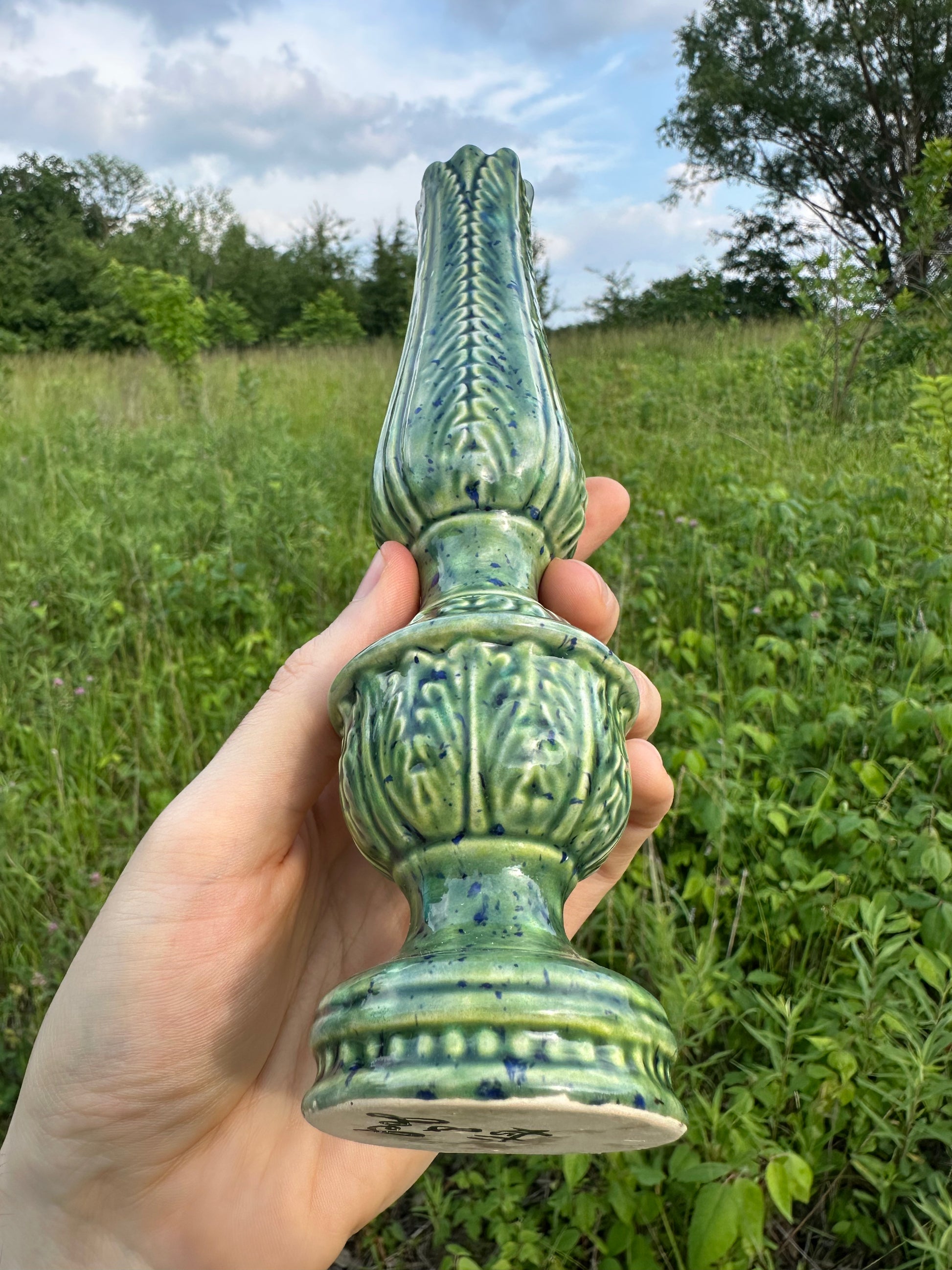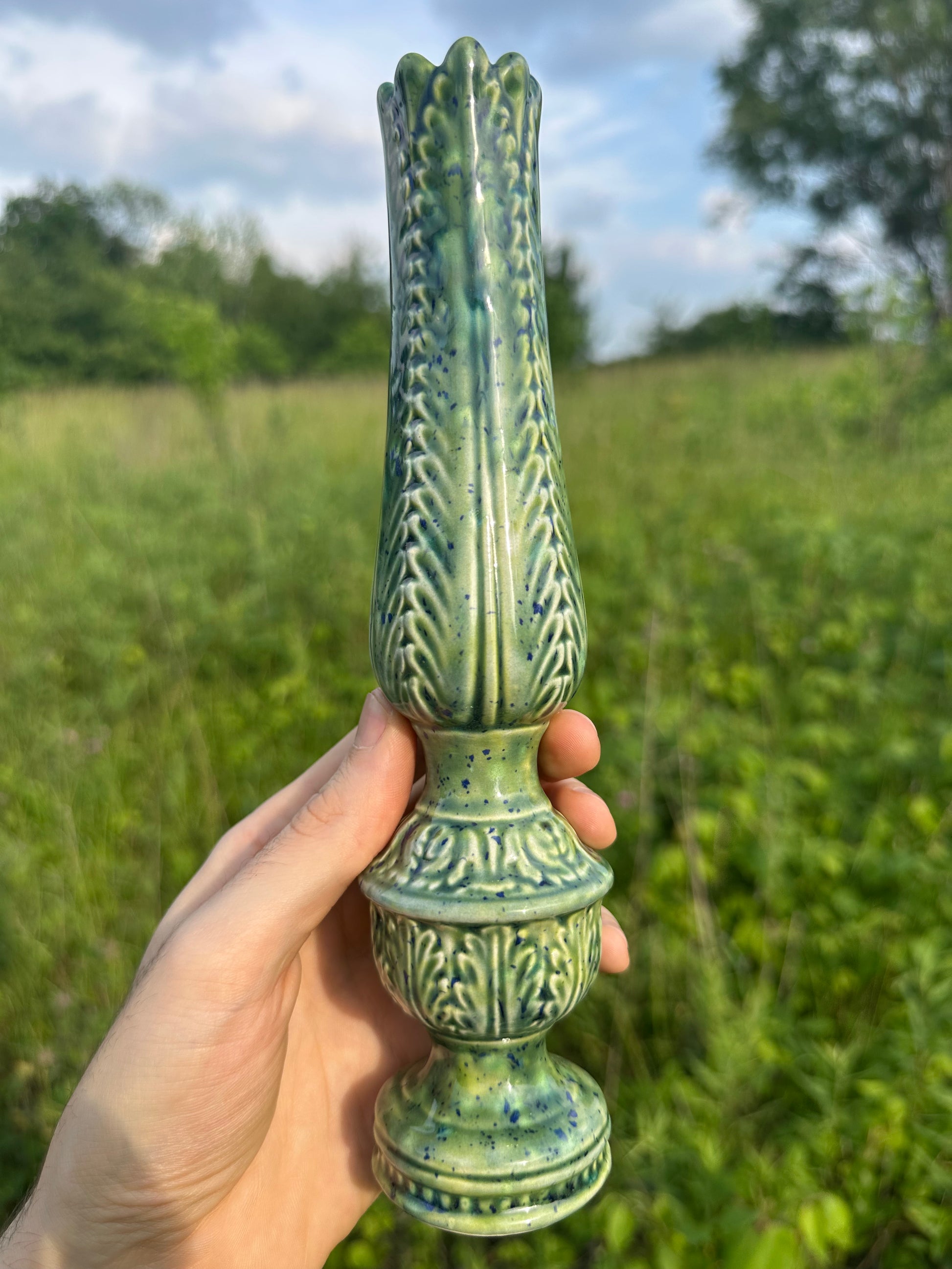 Unearthed from a forgotten garden, these handmade ceramic vases carry the timeless charm of a bygone era. Each one is crafted using a vintage plaster mold, preserving sculpted leaf and stem details that feel both nostalgic and naturally elegant. The flowing, organic shapes and bulbous forms give each piece a rooted, earthy presence—like something rediscovered rather than newly made. Finished with soft, glossy glazes, these vases let their form and texture speak for themselves. Whether holding blooms or standing on their own, they bring a thoughtful blend of history, craft, and beauty to any space.